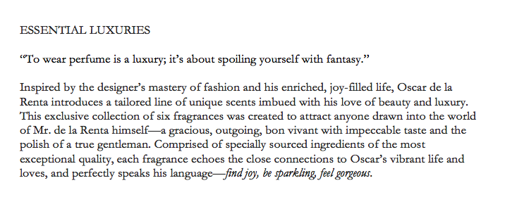 — DIGITAL COPYWRITING, BRAND STORYTELLING, FRAGRANCE COLLECTION DESCRIPTIONS, PRODUCT DESCRIPTIONS, PRESS INVITATIONS